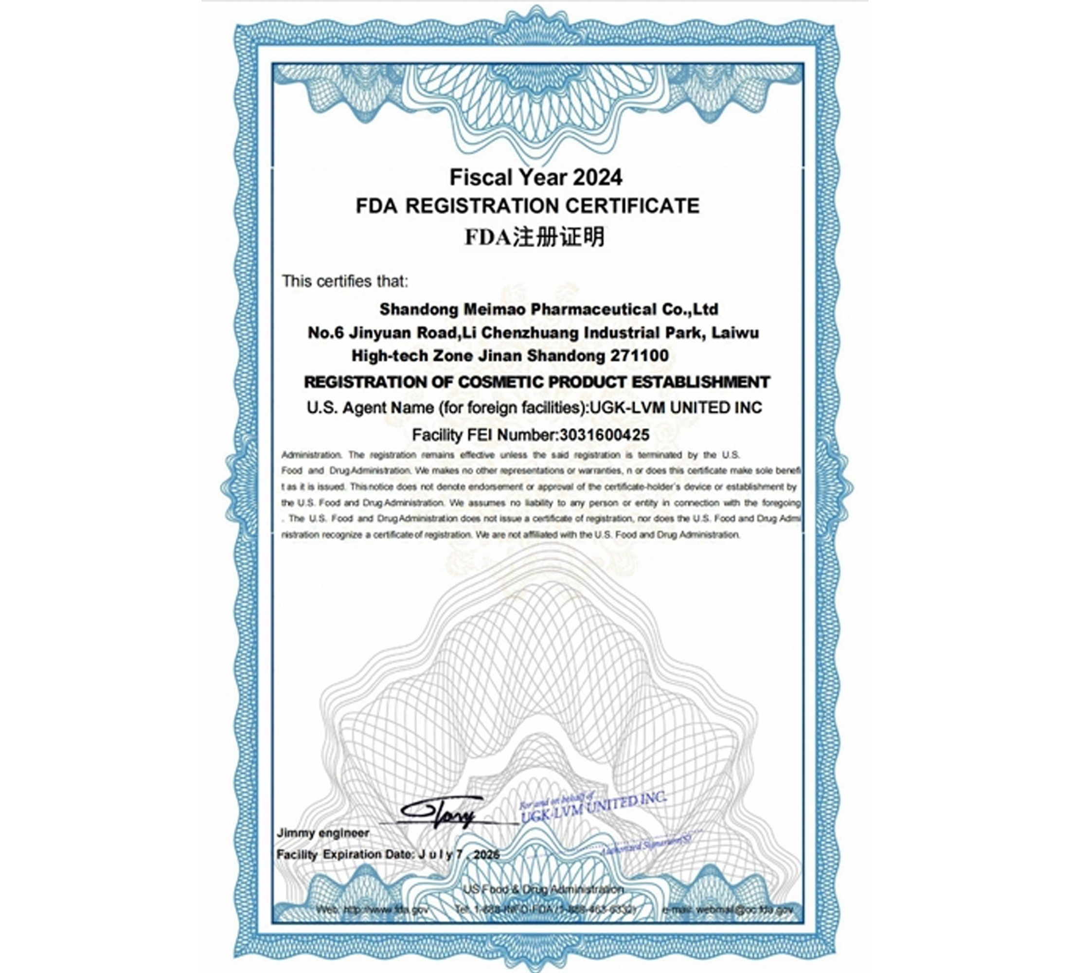 1、通过美国FDA认证